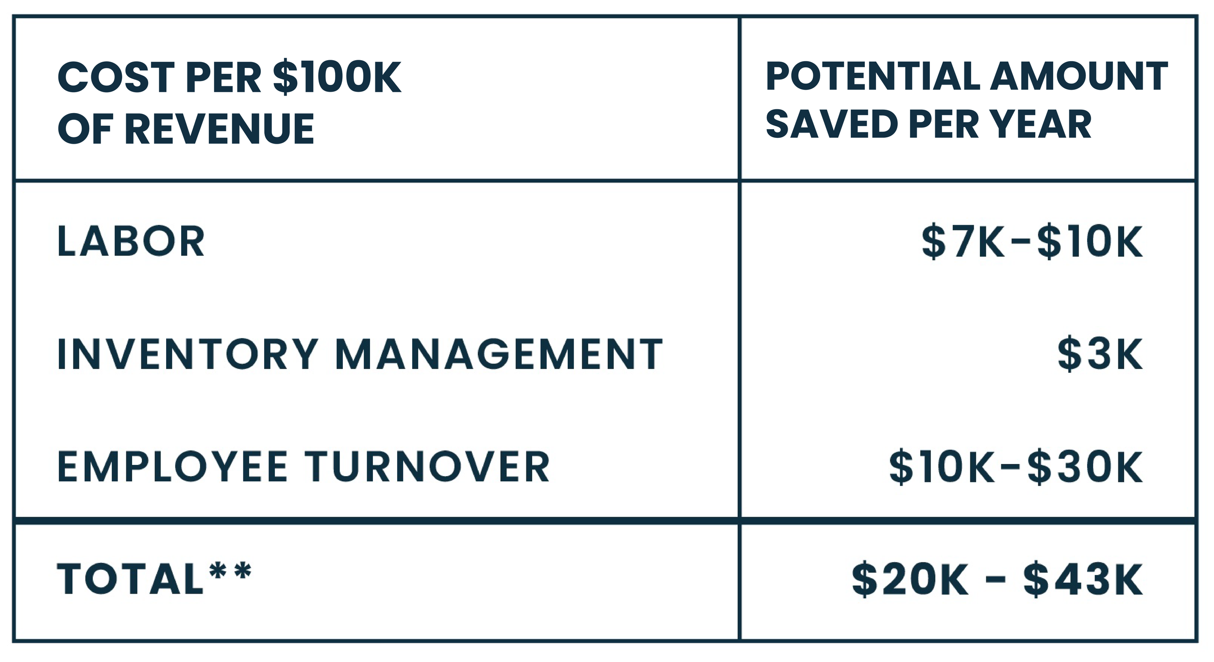 **Per every $100K Revenue