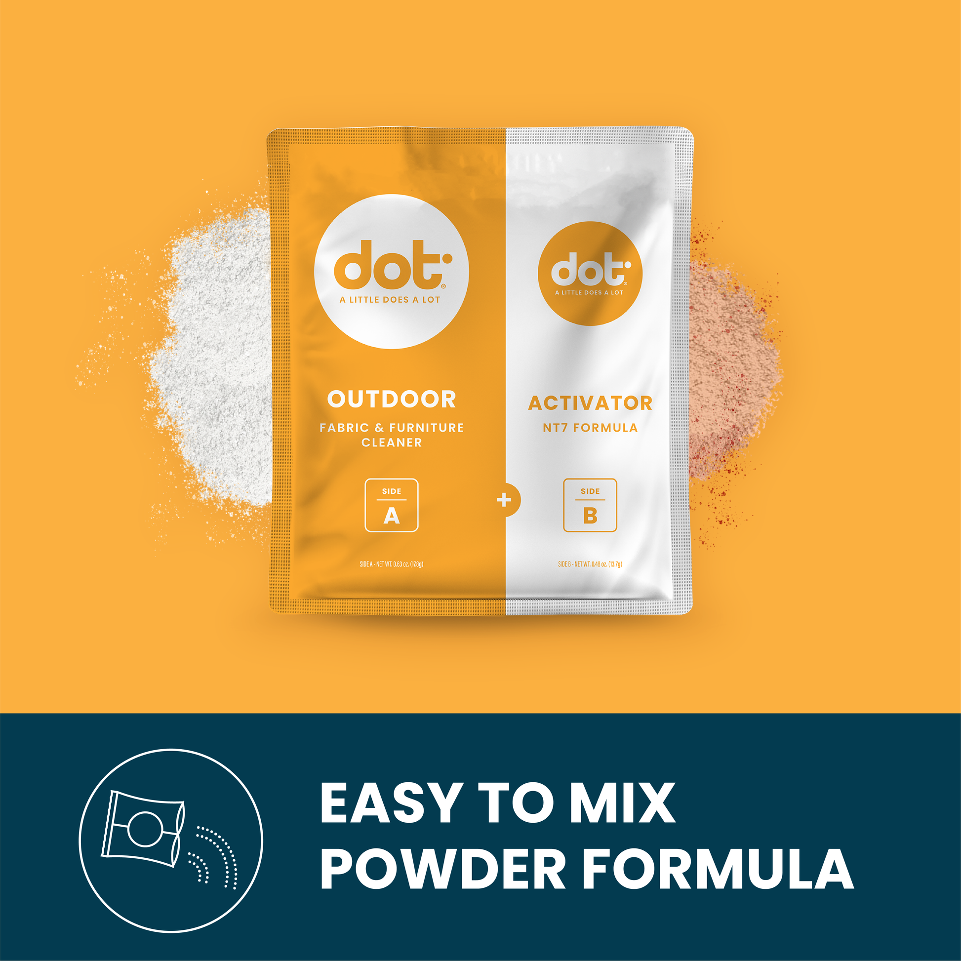 Outdoor fabric & furniture can become heavily soiled and stained due to exposure to the elements. Dot is ready to tackle staining from mold, mildew, algae, and more.
