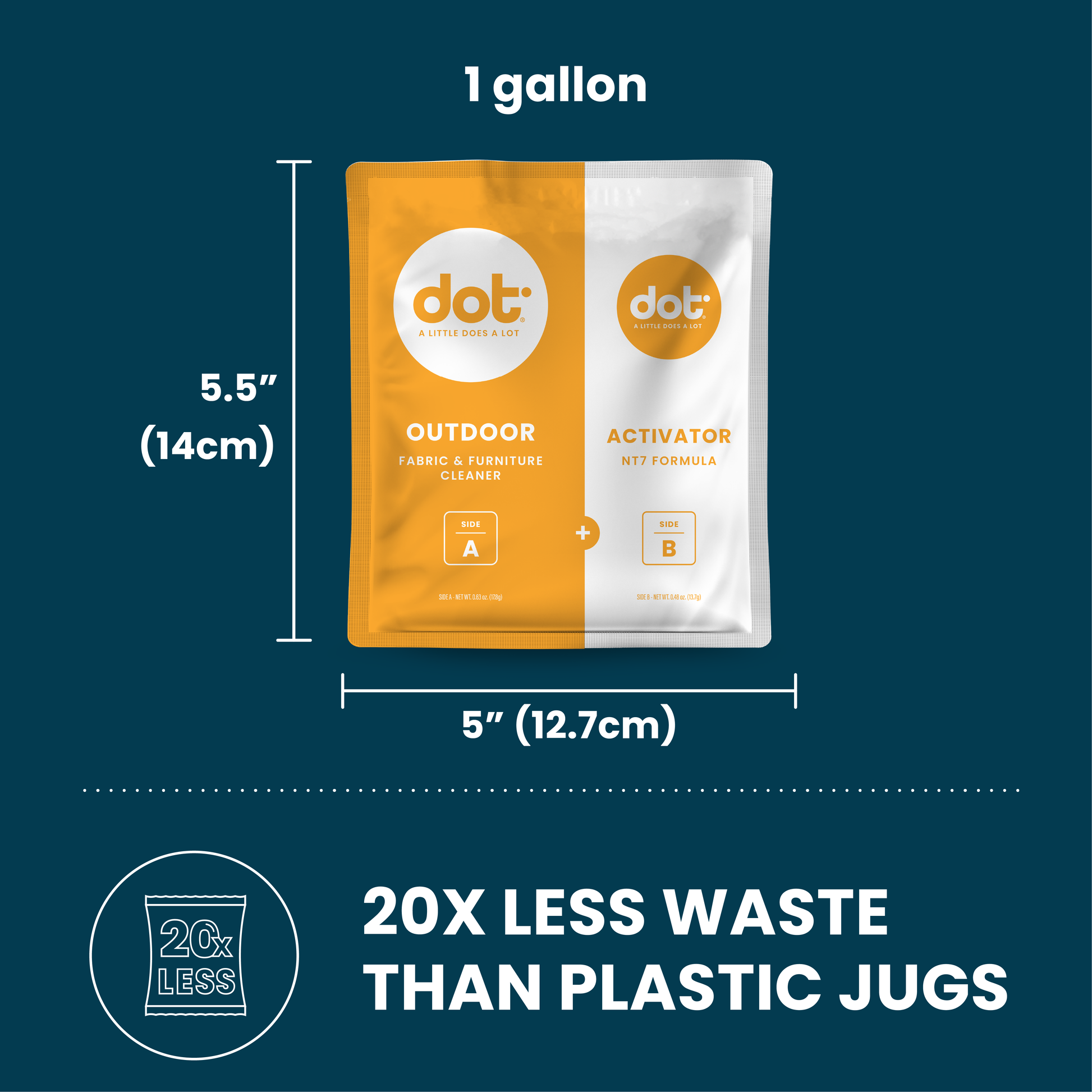 Dot's chemistry naturally brightens and restores the appearance of outdoor fabric and furniture to look new again.