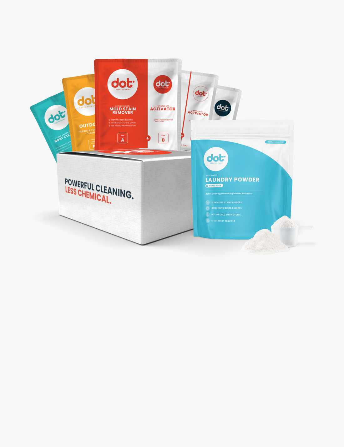 Dot products contain an oxidizer and our patented Activator. When mixed, Dilute Oxidation Technology® is engaged, resulting in powerful cleaning with dramatically less chemical.